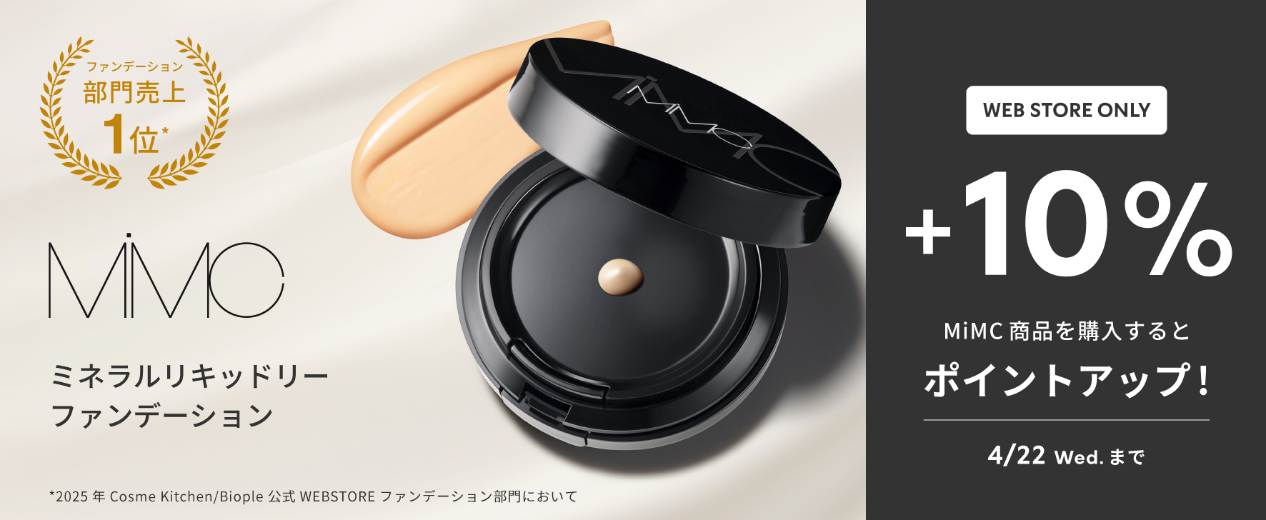 【MiMC】ミネラルリキッドリーファンデーション リフィル スポンジ付・SPF22 PA++<全5色>102 ニュートラル