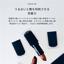 ミネラル由来のスムースパウダーによるソフトフォーカス効果でオイルの光沢感をおさえ、上品なミューテッドグロウの唇へ。