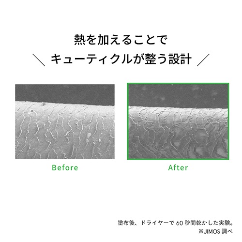 ドライヤーの熱を味方に髪内部まで補修しながら、キューティクルを整えてなめらかな手触りへ。