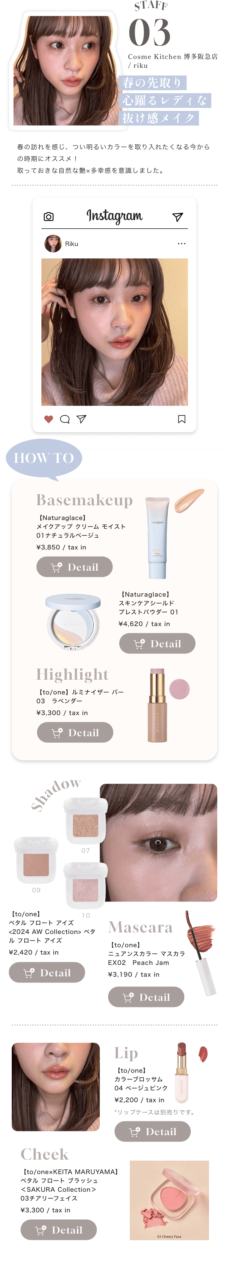 Cosme Kitchen コレド日本橋店 / 藤原夏華 色っぽ甘フェイスを作る愛されモテメイク 色っぽ甘フェイスを作る愛されモテメイク Cosme Kitchen 東武船橋店 / Nene 初対面で印象アップメイク 初対面で印象アップメイク Cosme Kitchen 博多阪急店 / riku 春の先取り心躍るレディな抜け感メイク 春の先取り心躍るレディな抜け感メイク BRAND PAGE All Item All Item All Item All Item All Item All Item All Item All Item Cosme Kitchen コレド日本橋店 / 藤原夏華 色っぽ甘フェイスを作る愛されモテメイク 色っぽ甘フェイスを作る愛されモテメイク Cosme Kitchen 東武船橋店 / Nene 初対面で印象アップメイク 初対面で印象アップメイク Cosme Kitchen 博多阪急店 / riku 春の先取り心躍るレディな抜け感メイク 春の先取り心躍るレディな抜け感メイク