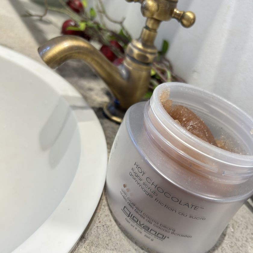 giovanniのボディスクラブです。冬はシュガーボディスクラブのHOT CHOCOLATEが大好きで使用しています♪