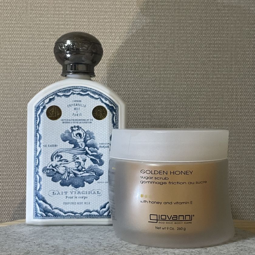 giovanniのボディスクラブとビュリーのボディミルクです。