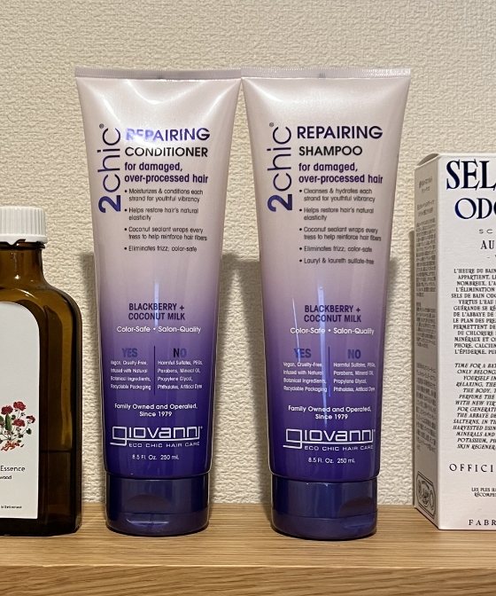 いつものシャンプー&コンディショナーはgiovanniの2chic スリークシリーズを使っています。
