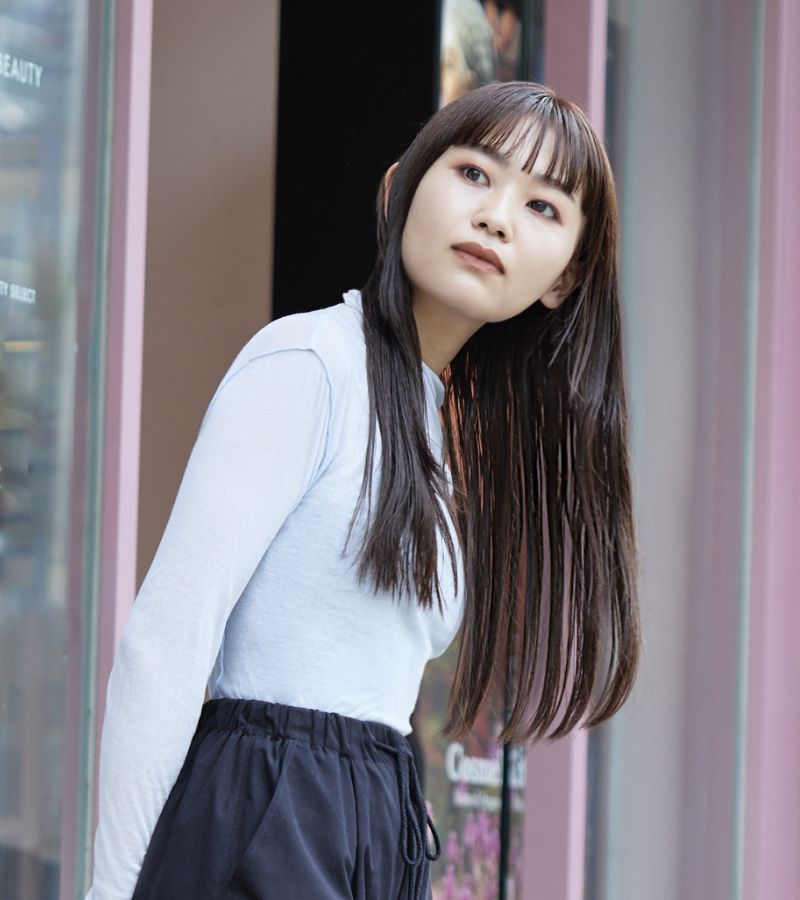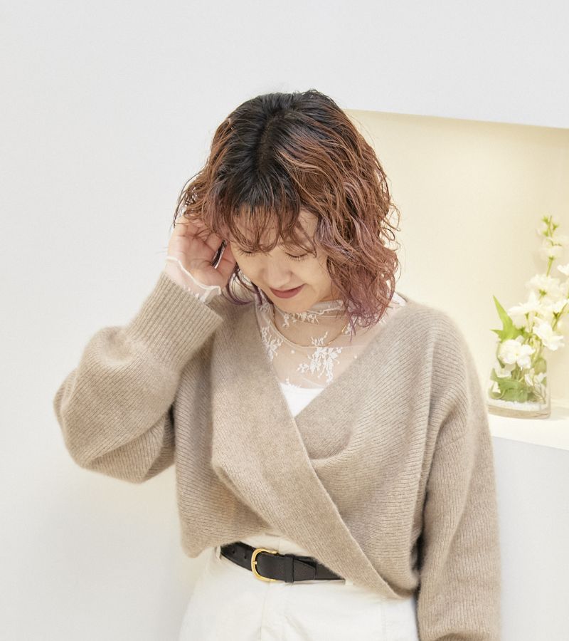 スタイリングのポイントは割とぺたっと収まりやすい髪なので巻きすぎず、立体感や柔らかさを出すためにオイルではなくセラムを使うようにしています。