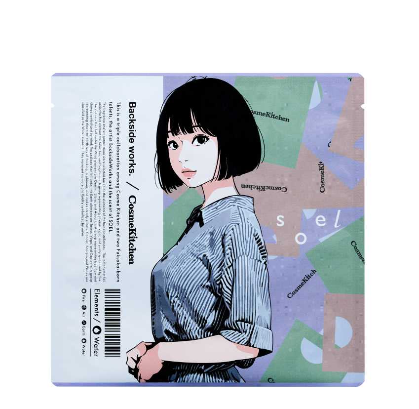 "地"エレメントをイメージした ヒロインが描かれたフェイスマスク。 密着度の高いマスクが美容成分を届け、 透明感*1のある肌に。 *1皮膚に潤いを与えること。
