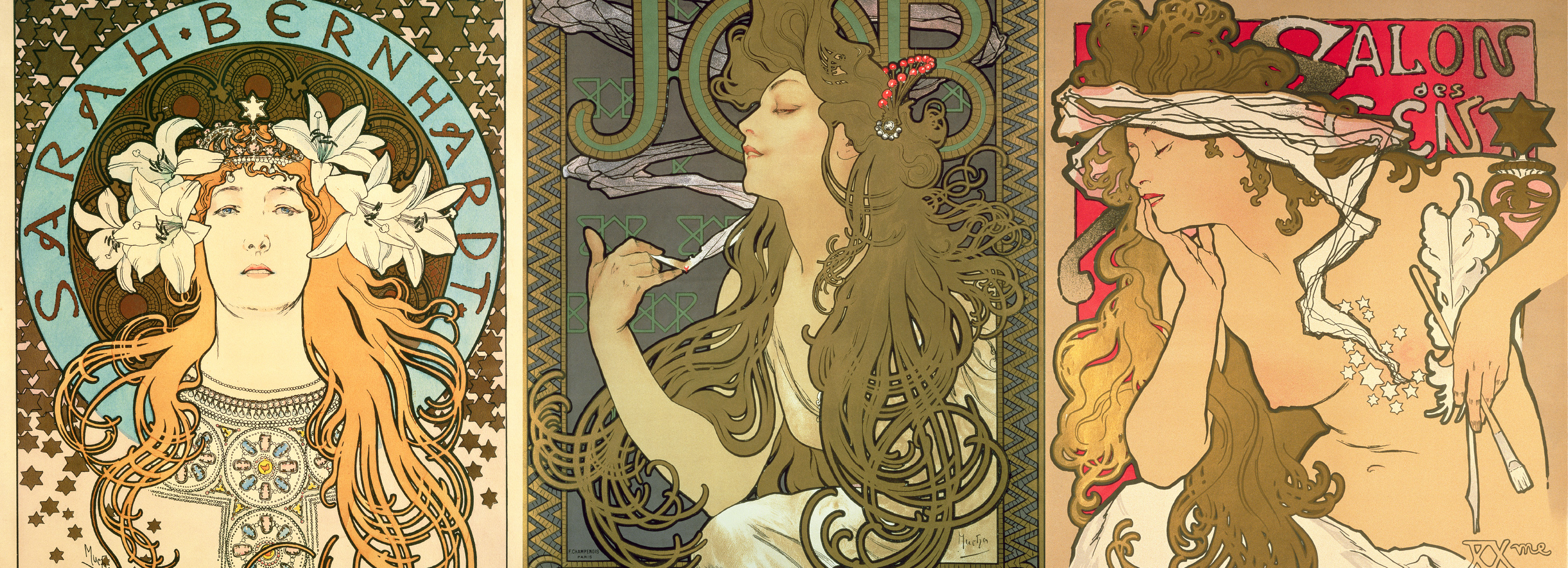 彼の紡ぐ優美な曲線と美しい色彩の装飾は、アール・ヌーボーの別名で「ミュシャ・スタイル」と謳われていたほど。