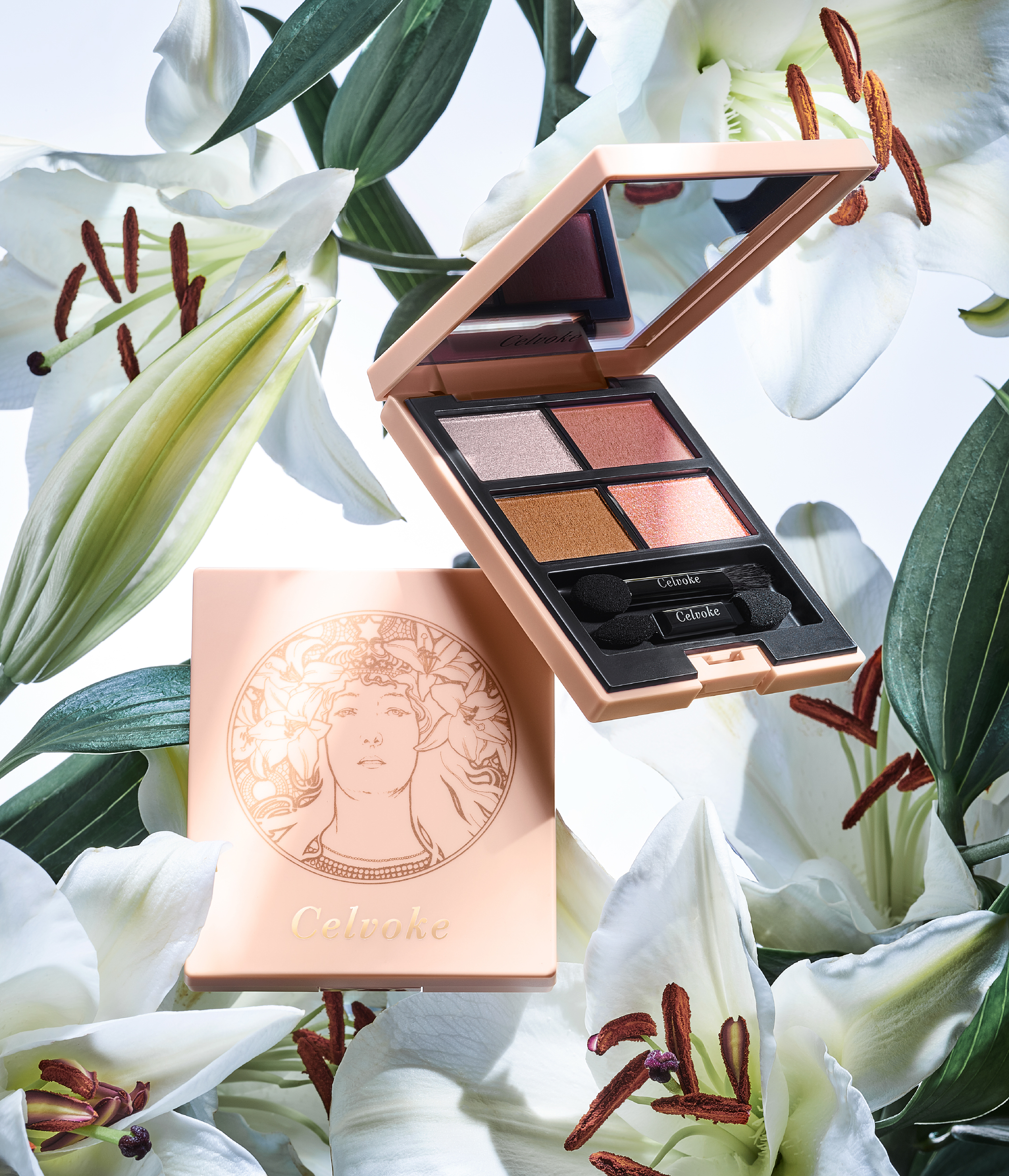 アイパレット・チーク・リップグロス。それぞれが導く女性像を彷彿とさせるミュシャの絵画をパッケージに施して、繊細で華やか、それでいて惹きつける強さを持ち合わせたコレクションが誕生しました。