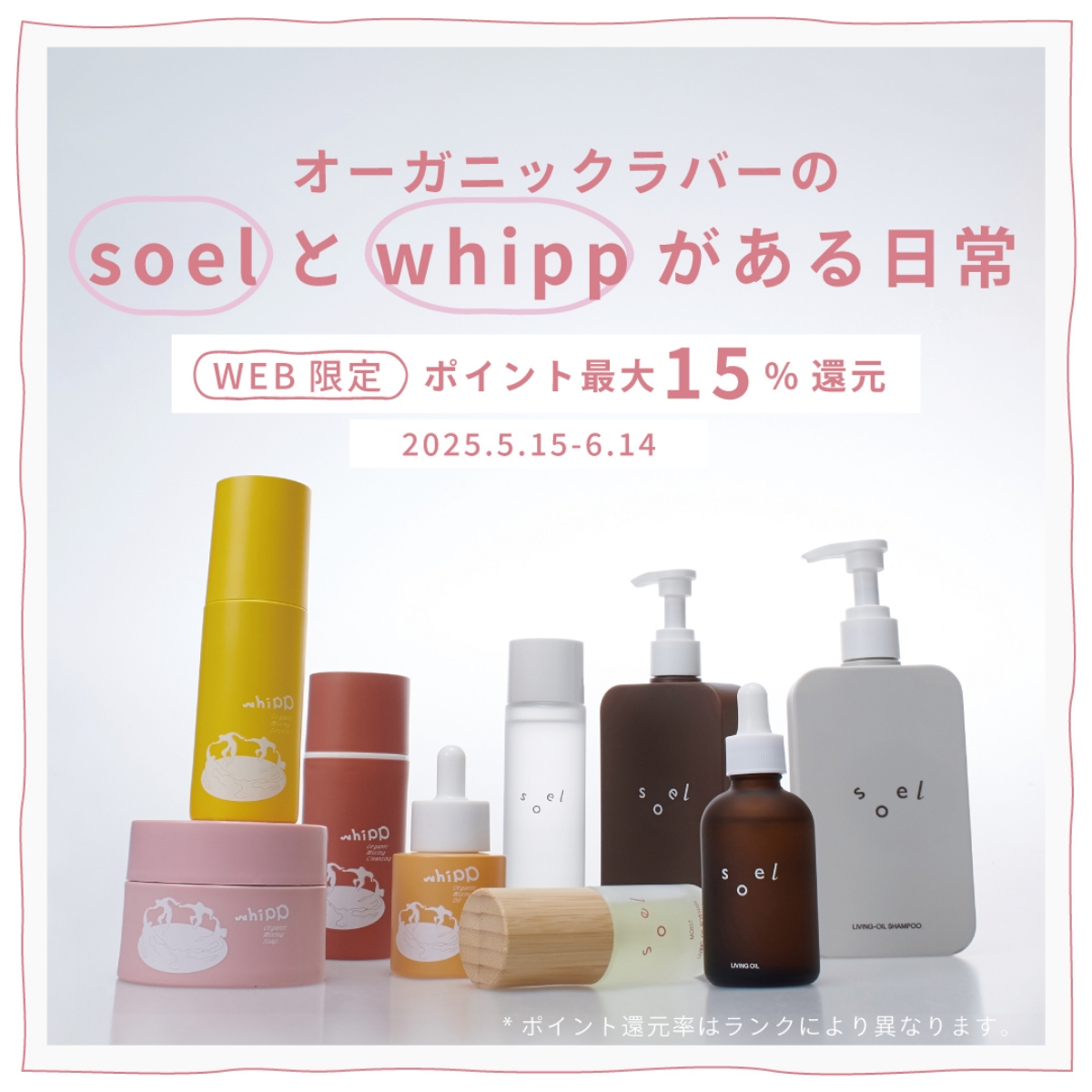 soel・whippって?What’s soel? / What’s whipp? オーガニックラバーのsoelとwhippがある日常Life with soel & whipp スタッフレビューStaff review 福岡生まれの植物由来の生きた酵素に着目した ホリスティックスキンケアブランド・soel(ソエル)と、 肌にやさしく、効果や使用感にも妥協しないwhipp(ウィップ)。 Cosme Kitchen・Biopleスタッフや、 オーガニックコスメラバーが今、 大注目している2つのブランドにフォーカス。 愛用品やリアルな使用方法を大公開! ソエルsoel・ウィップwhippって? What’s soel? / What’s whipp? ものづくりのまち、福岡県久留米市から生まれた、オーガニックスキンケアブランド・soelとwhipp。 どちらのブランドも安心、安全なプロダクトを届けるために、環境や動物への負荷を極力少なくし、農薬や化学肥料などの化学物質に頼らずに厳しい基準をクリアした背景で生産された原料を使用していることを示す、オーガニック認証を取得している。 担当バイヤーが語る、その魅力。 シンプルで洗練された佇まいが毎日の生活に溶け込むsoelと、スキンケアを楽しい時間に導くポップなカラーリングのwhipp。どちらも肌に寄り添うような心地よい使用感と豊かな香りでライフスタイルを彩ります。特にシェイクして使うwhippのミキシングローションは、手軽に楽しく保湿がかなうアイテムとしてお気に入りです。 soelは、「生きたオイル」を慈しむスキンケアブランド。 有機セサミオイルを丁寧に手作りし、肌本来の力をそっと引き出す。 飾らない美しさへ導くシンプルな処方は、忙しい日々の中に、ふと訪れる自分だけの静かな時間をもたらすだろう。 上質なオイルが、心地よい肌と心へ。 自然の力を凝縮したスキンケアブランド・whipp。 肌への優しさを追求したシンプルな処方ながら、確かな効果を実感できるのが嬉しい。 忙しい毎日、豊かな泡に包まれる洗顔は、ささやかな贅沢。 自然の恵みを感じながら、心地よく肌と向き合う時間。whippは、そんな丁寧な暮らしにそっと寄り添う。 オーガニックラバーのsoelとwhippがある日常 Life with soel & whipp 乾燥肌アトピー性皮膚炎 近藤 真美 混合肌 杉浦 遥 敏感肌 中嶋 美優 敏感肌混合肌 長谷川 綾 乾燥肌アトピー性皮膚炎 半田 あかり 乾燥肌アトピー性皮膚炎 マッシュスタイルラボ商品部SNS課近藤 真美 乾燥肌なので保湿力やツヤ感を重視しています。30代に入りくすみやシミが最近の悩みです。 whipp organic ミキシング ローション ¥3,960 振って使用する2層式ミストローション。スプレータイプなので乾燥しやすいお風呂あがりにさっと使えて便利です。さっぱりしていて、べタつきませんが保湿力があり夏にぴったりなアイテム♡香りも清涼感あるさわやかな香りです。 whipp organic ミキシング オイル ¥4,840 化粧水前のブースターや、仕上げに蓋をする役目としても使えるオイル。べたつきがなく、肌にスーッと浸透するテクスチャーなのもお気に入りポイント♡高い保湿力でしっとりしたお肌が作れちゃいます。アトピーで敏感肌なので植物由来の成分で作られているのも嬉しいポイント。 soel LIVING-OIL DELICATEフェミニンオイル ¥4,800 保湿効果が高く乾燥が気にならなくなりました。フェムケアオイルの中ではお手頃価格で毎日愛用しやすいのも嬉しいポイント。天然植物由来100%で顔にも使えるところもお気に入り♡癒される香りでリラックスタイムに。 近藤 真美さんおすすめアイテム3選 whipp organicミキシング ローション ¥3,960(税込) Detail whipp organicミキシング オイル ¥4,840(税込) Detail soel LIVING-OILDELICATEフェミニンオイル ¥4,800(税込) Detail 混合肌 ウサギオンライン杉浦 遥 混合肌。肌の部分で異なった悩みがあり、おでこは皮脂が多く、頬から下は水分量が少なく、乾燥しやすい為赤みがでてしまうのが悩みです。 soel LIVING-OIL DELICATEフェミニンオイル ¥4,800 1度使ってから、フェムケアにはこちらを愛用し続けて3本目です。さらっとしたオイルにも関わらず、保湿力が高く香りにも癒されます。夏に向けてボディケアにより力を入れたい今の時期に欠かせない1本です。 whipp organic ミキシング ローション ¥3,960 朝の洗顔後に時短スキンケアとして愛用してます。オイル配合なので、朝から晩までしっとり感が続き1日中肌が潤います。また、ミストタイプなのでこれまで困難だった背中ケアにも使用してます。 whipp organic ミキシング クレンザー ¥4,400 ミルクタイプなので、肌への摩擦の心配がなく毎日使用でき、皮脂のつまりが気にならなくなりました。数日間使用してみて、肌がうるおい、キメが整ってきたように感じます。そのおかげで、ファンデーションの色選びも、いつもより明るいトーンのものを試してみようかな、という気持ちになりました。 杉浦 遥さんおすすめアイテム3選 soel LIVING-OILDELICATEフェミニンオイル ¥4,800(税込) Detail whipp organicミキシング ローション ¥3,960(税込) Detail whipp organicミキシング クレンザー ¥4,400(税込) Detail 敏感肌 Biopleグランスタ丸の内店中嶋 美優 2021年入社、愛