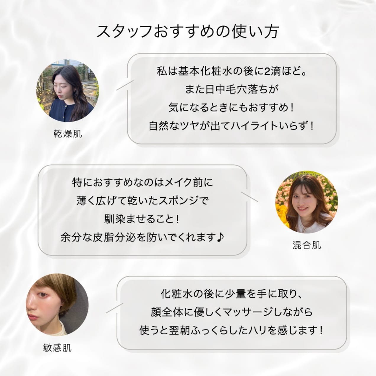 調香師と何度も試作を重ね、お顔に使う時の心地よさや香りの重なりにも徹底的にこだわり、