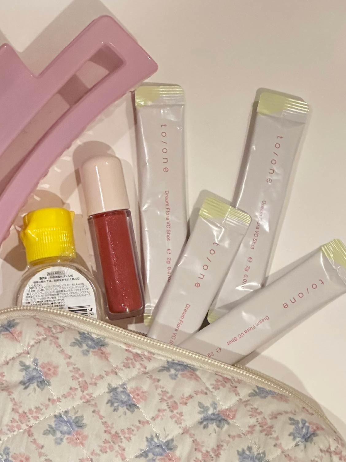 いつでもどこでも飲めるように持ち運び用のポーチに常に入れています。不規則な生活リズムなので摂取をなかなかルーティーン化できず飲み忘れてしまうことが多く、気づいたときにさっと飲めるようにポーチに数本は入れておくようにしています。