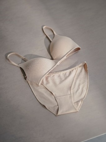 通常価格¥7,700(税込)のブラと¥4,730(税込)のショーツがセットになった特別キット。カップとアンダーが一体型になった、モールドカップを採用したブラ。アウターにも響きにくく、丸みのある自然でキレイなシルエットをキープできるので、シーンを問わず普段使いに最適。