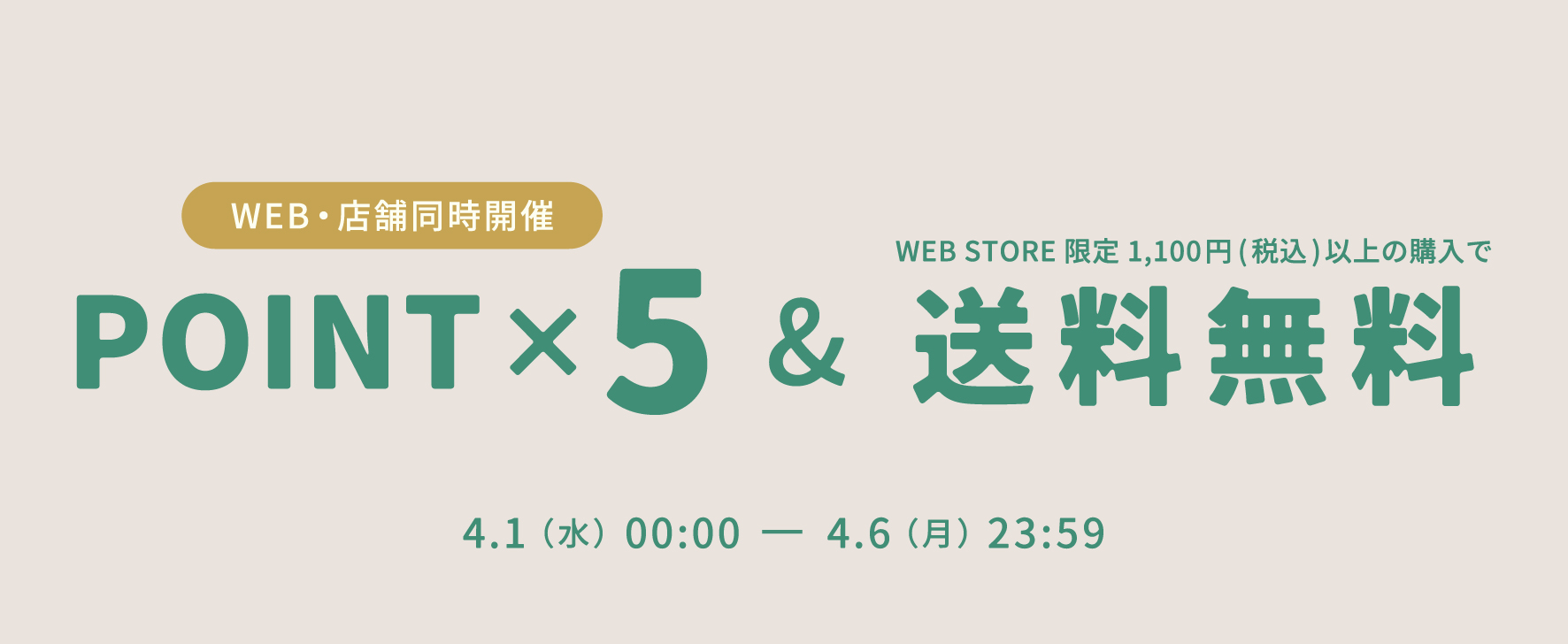 4/1(水)~4/6(月)の6日間、対象の店舗とWEB STOREにてポイント5倍キャンペーンを開催いたします。