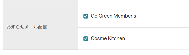 マイページよりCosme Kitchen、GO GREEN MEMBER'Sのメールマガジンの解除をお願いいたします。