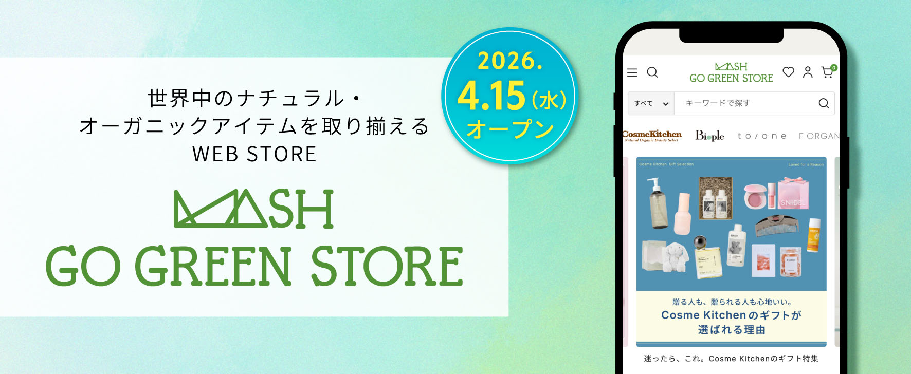 今後ともCosme Kitchen/Biople、そして新しく生まれ変わるMASH GO GREEN STOREを、どうぞよろしくお願いいたします。