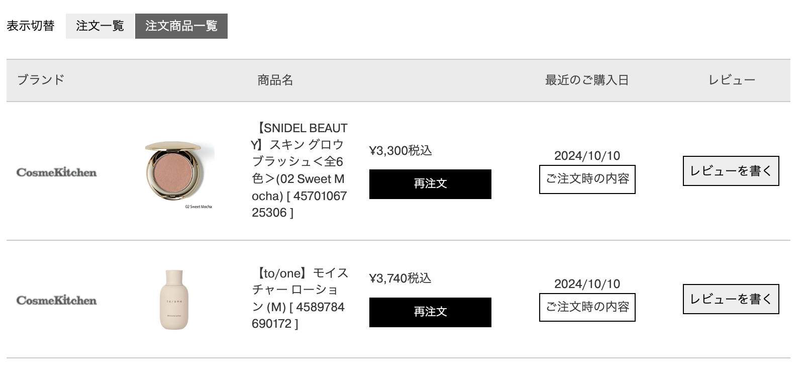 ・商品毎にある「レビューを書く」を選択いただくと、レビュー投稿いただけます