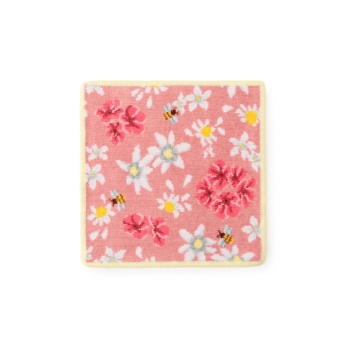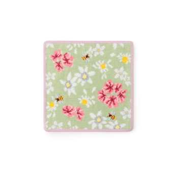 ドイツ・シュニール織のコットン100%のハンカチはコスメキッチンで取り扱う化粧品の美容成分に使用されている花をモチーフにしました。ペールグリーンとピンクの2色展開。