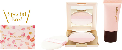 リピート率が高いメイククリームとパウダーのセット。この2つを使えば、素肌感を残しながらも肌悩みはキレイにカバー。厚塗りしなくても美しいツヤ肌に仕上がります。パウダーのちょうどよいパールで、仕上がりも華やかに!