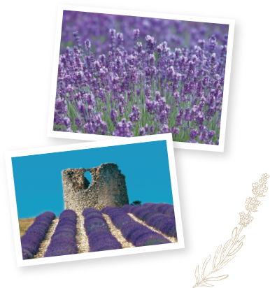 フランスの南プロヴァンスをはじめとする世界各地で栽培されているラベンダー。その品種は実に多様。その中でトゥルーラベンダー(真正ラベンダー)はラベンダーの原種であり、高地(標高900m以上)にしか生息せず、収穫場所や量は非常に限られます。また精油100mLの生成には、13kgもの花が必要になるため、大変希少です。やさしいフローラルノートとさわやかなハーバルノートが混ざり合ったまろやかな芳香もさることながら、その薬効の高さから医薬用(鎮痛、抗炎症、痛みの緩和、感染防止など)としても利用されています。ゆえにフランスでは「青き黄金」と呼ばれ、珍重されているのです。シャトー・デュ・ボワの全製品には自社のオーガニック・トゥルーラベンダーが贅沢にブレンドされています。
