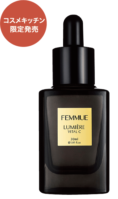 夏の疲れは、主に肌色に現れる。どんよりした肌色の濁りは、やはり夏バテと紫外線がもたらすもの。だから秋の始まりは1年中でいちばん肌のトーンが暗く、輝きが見えないと言われるほどなのだ。そこで“肌色の夏バテ”とも言うべきトーンダウンに届けたいのが、人気のファミュの美容液。安定化したビタミンC誘導体と3 つのツヤ成分※1を配合。内側から輝くような、光に満ちた明るい印象をもたらすばかりか、毛穴を引き締めキメを整えてくれる。それも古い角質をやさしくオフ、化粧品の浸透※2を高める導入ケアの働きも兼ねているから、とても頼もしい一品だ。