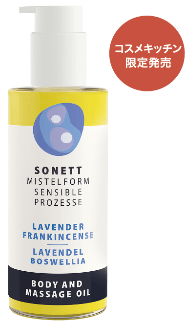 自然の神秘、生命力の不思議、植物のたくましさをそっくりを教えてくれるのが、宿り木。他の木に寄生して育つ、マリモのような球体の植物は、寄生した幹から水分や栄養分を吸い取るのにその木を枯らさないし、自らも1年中枯れない。自然界の掟に反する生命力から、花言葉は「困難に打ち勝つ」。その恩恵をそっくり1瓶に詰めたのがこのオイルなのだ。たっぷりのヤドリギエキスに加え、オリーブ果実油やラノリン配合。冷えやむくみもマッサージでじんわり和らげ、しっとりもっちりの肌に仕上げていく。ラベンダーの香りがなんとも心地よい。