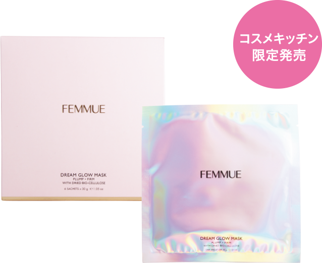今注目の的なのがオーガニック系のシートマスク。そもそも蒸しタオルなどで顔をすっぽり覆うと、それだけで癒されるが、そこにオーガニックのホスピタリティーが加われば、これ以上の心地よさは無いはず。中でも素晴らしいのがファミュが探し当てたドライバイオセルロース。肌に吸い付くようにフィットし30分つけていても乾かない。角質層まで深深と潤いを送り込む。良いことずくめの素材は、ココナッツ発酵エキスによる極細繊維を3D状に編み込んだもの。特にコスメキッチン限定のハリ用(PF)は肌のハリ、ツヤを感じ、透明感用(RR)は肌が透き通るよう。手応えがちょっと凄いのだ。マスク中も幸せ、剥がして幸せ、1日中幸せ。何かある日、誰かと会う日のヒュッゲなマスクとして。
