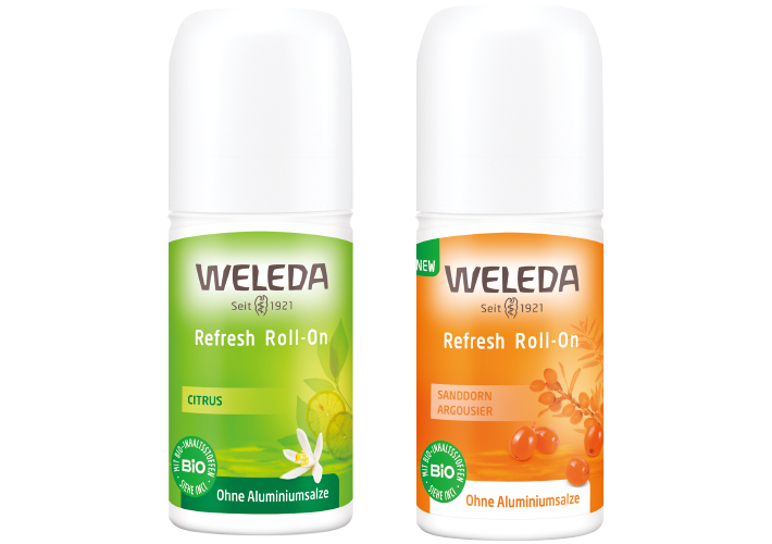 アルミニウム塩フリーの、ボディリフレッシュロールオン。汗のニオイや体臭を精油の香りでリフレッシュ!汗を拭きとった脇の下に塗布すれば、1日爽快に過ごせます。ヒッポファンとシトラスの2タイプの香り。