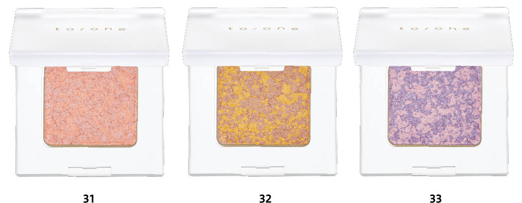 2色が散りばめられたミックスアイカラー。混ぜる位置や量によって様々な表情を生み出し、個性を引き出します。幸福感溢れるピーチベージュ、陽の光のようなサンフラワーゴールド、優しいラベンダーの3色展開。寛容な目元を演出し、輝く未来を見つめて。
