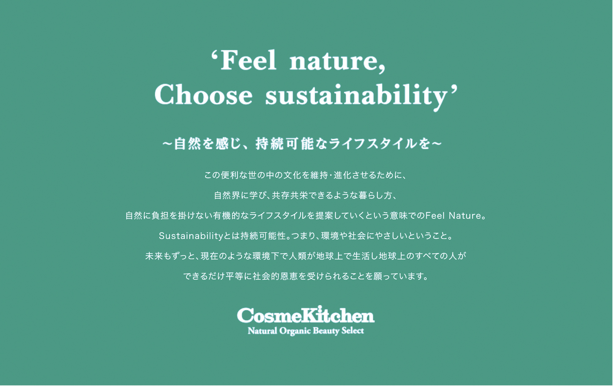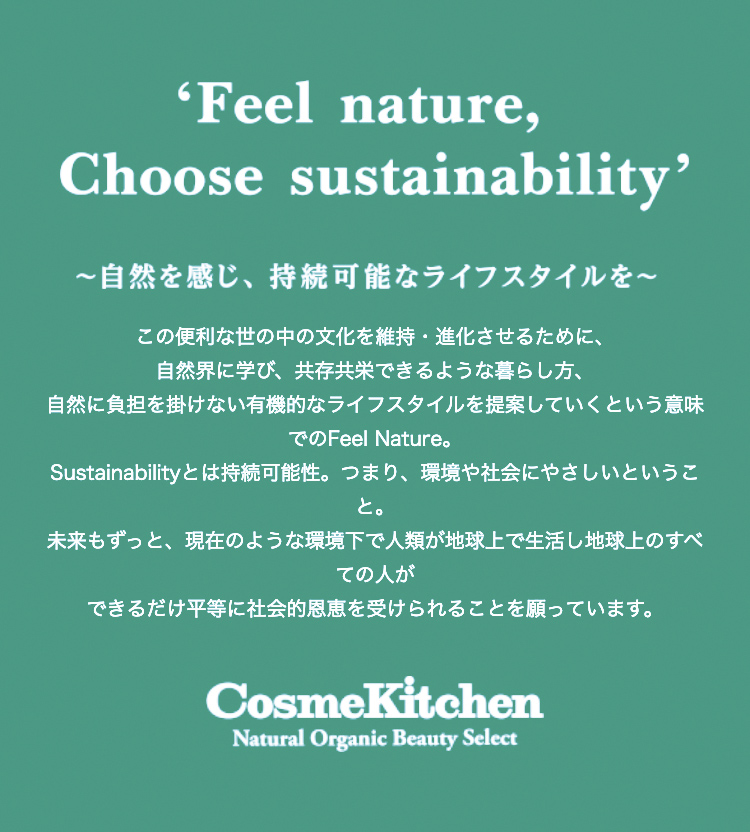 コスメキッチンがこの言葉を今年のスローガンとした時、なぜなのだろうと考えた。そもそもが、コスメキッチンの提案に自然に気持ちが引き寄せられてくる人の多くは、日ごろとても頑張っている人なのだと思う。きっと頑張りすぎてしまうから、自分を癒してあげたくて、ここに来るのだろうと。すでに充分に頑張ってる人たちに向けて、コスメキッチンはなぜこの言葉を贈るのだろうと、一瞬不思議に思ったのである。
