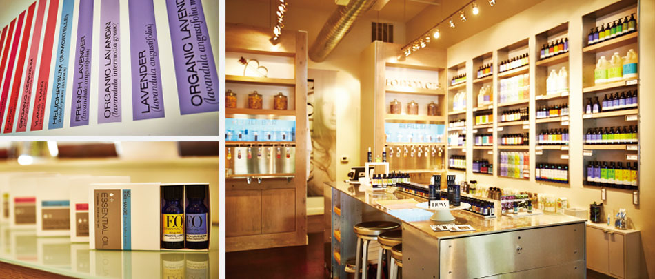 「楽しいことをやっていると、時間なんてあっという間ね。」そう話すのは、来年創立20周年を迎えるアロマ&ボディケアブランド<EO products>創設者のひとり、スーザン。彼女はもともと服飾デザイナーとして、天然素材の活用や環境によいファッションの追究をしていた。あるとき、イギリスで訪れたナチュラルアポセカリー(自然薬局店)でアロマテラピーと出会う。「天然植物の力で心身を癒すアロマテラピーの世界に夢中になったわ。早速アメリカに戻ってイギリスのエッセンシャルオイルを輸入し始めた。でも、勉強や経験を重ねていくうちに、イギリスとアメリカのマーケットニーズの違いに気付いたの。だから1995年に自分たちでブランドを立ち上げたのよ。」設立当時を彼女はこう振り返る。「オーガニック商材がちょうど市場に出始めたころで、他社はこぞってボタニカルなデザインを打ち出していたの。私たちはその真逆。クリーンでモダンな書体やデザイン表現を採用した。それが広く受け入れられ、現在でも同じコンセプトを踏襲しているわ。」