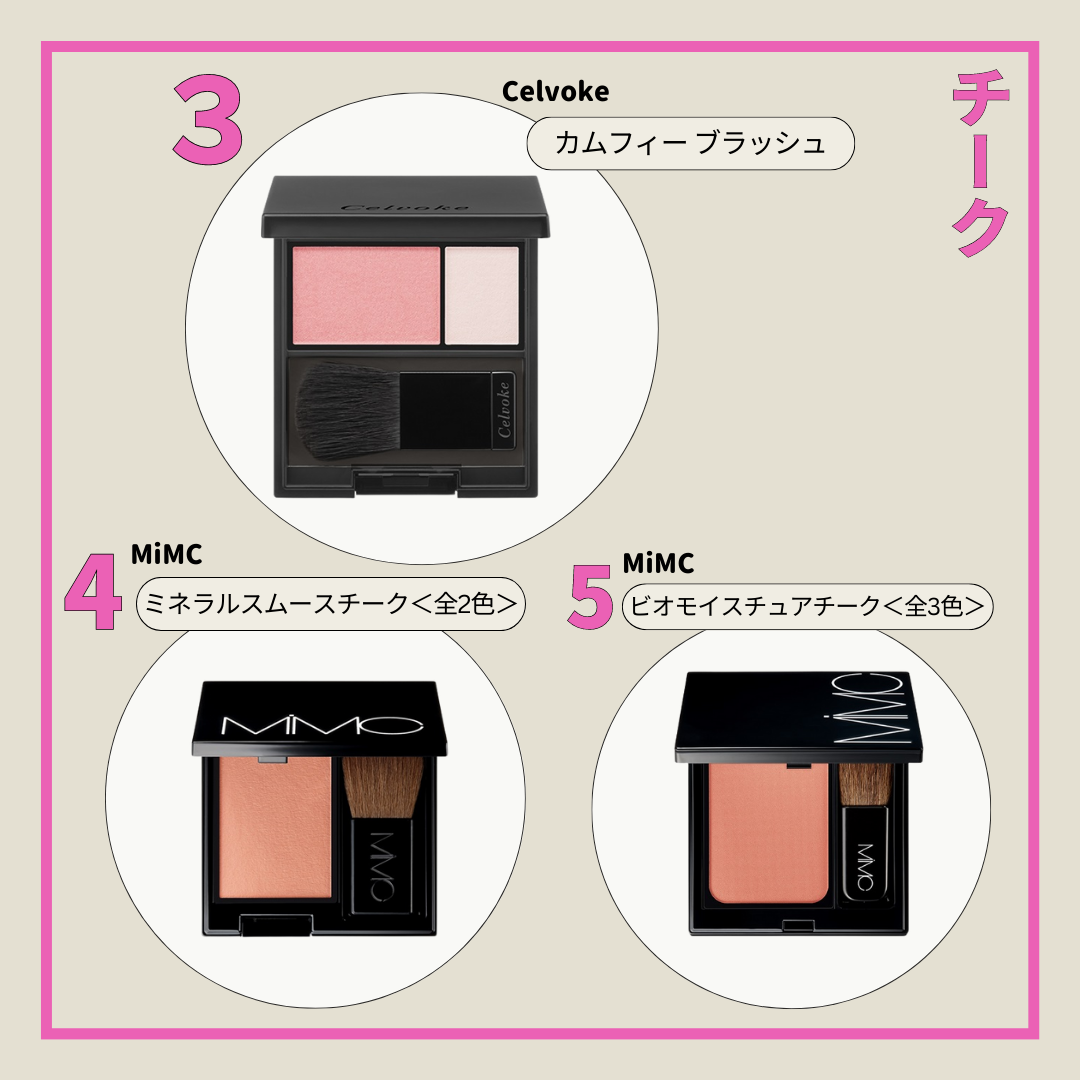 「ほてったような自然な血色感を演出できる。チークをつけただけで、血色感も透明感も立体感も出せてしまうのがすごい!!」