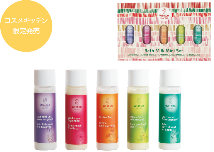 人気のバスミルクセットが、ヒュッゲなデザインで登場。ゆっくりしたい時のラベンダー、女性らしいローズ、すっきりとしたいときのアルニカ、爽やかなシトラス、森林浴気分のモミ。今日惹かれる香りは、今日のあなたをいたわります。