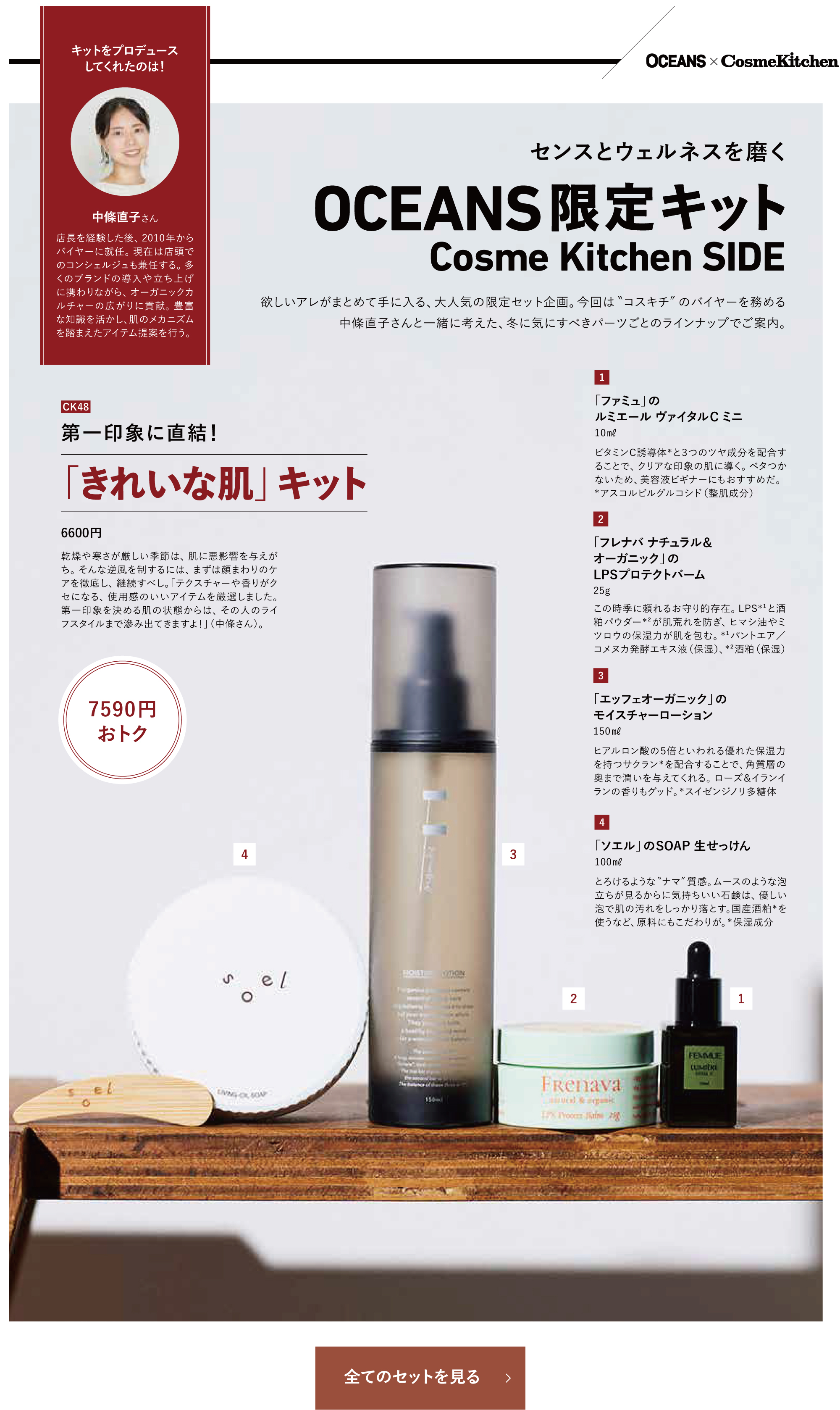 HOME > OCEANS × Cosme Kitchen 男のウェルネスグッズ69 2022 winter > センスとウェルネスを磨く OCEANS限定キット Cosme Kitche SIDE