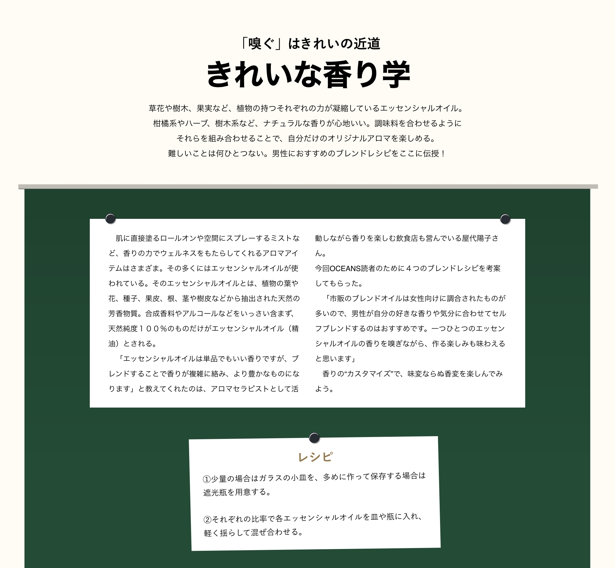HOME > OCEANS × Cosme Kitchen ウェルネス グッズ カタログ 2022 Summer > きれいな香り学